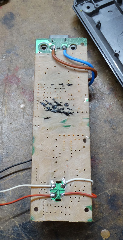 Aquí podeu veure com vaig utilitzar un transformador 12v i el vaig unir a la placa original de la PSX per poder utilitzar el seu botó de POWER. Com que de la placa original de la consola només necessitava aquest interruptor i el connector 220V, vaig destruir la resta de pistes perquè no influïssin ni fessin encreuament.